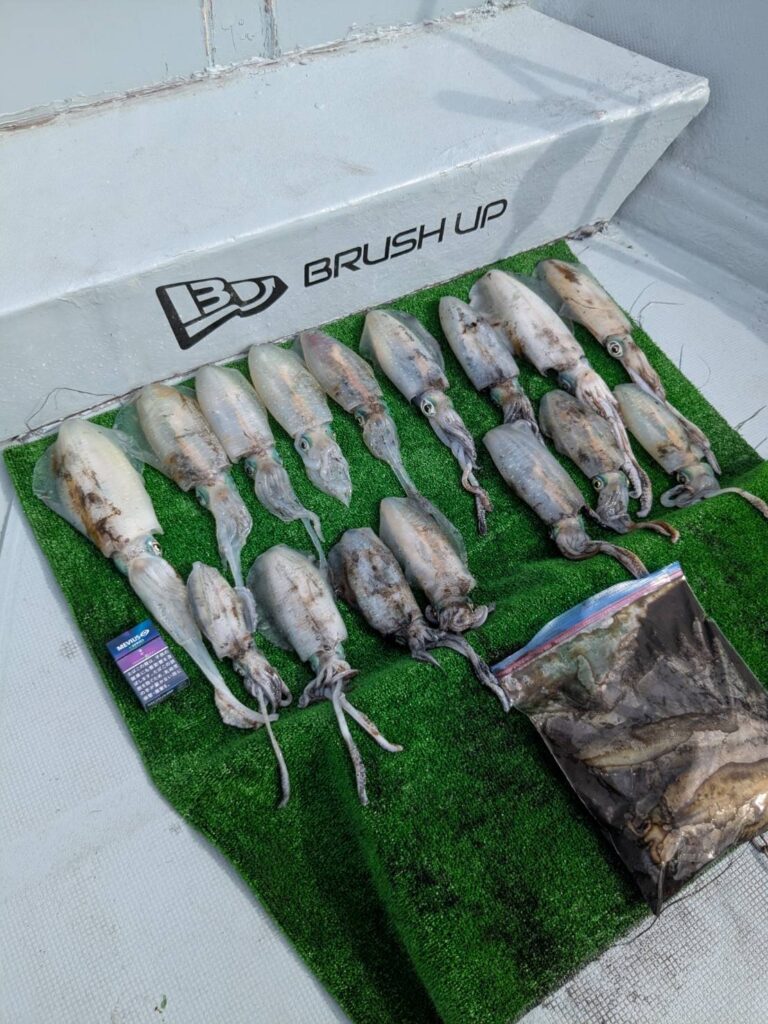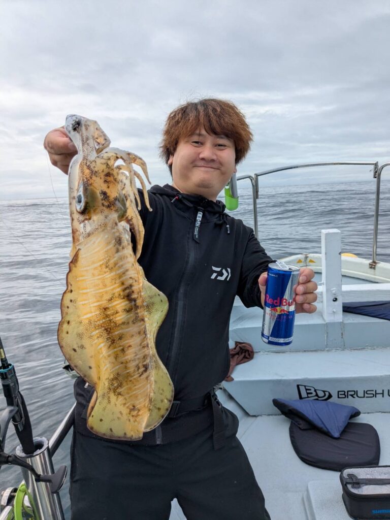 前半全くのベタ凪状態、風無しで船が流れず苦戦しましたが、後半潮が効き出してからの、ラッシュも有り、何とか18杯(沖漬け含む)釣って頂く事が出来ました٩(^‿^)۶