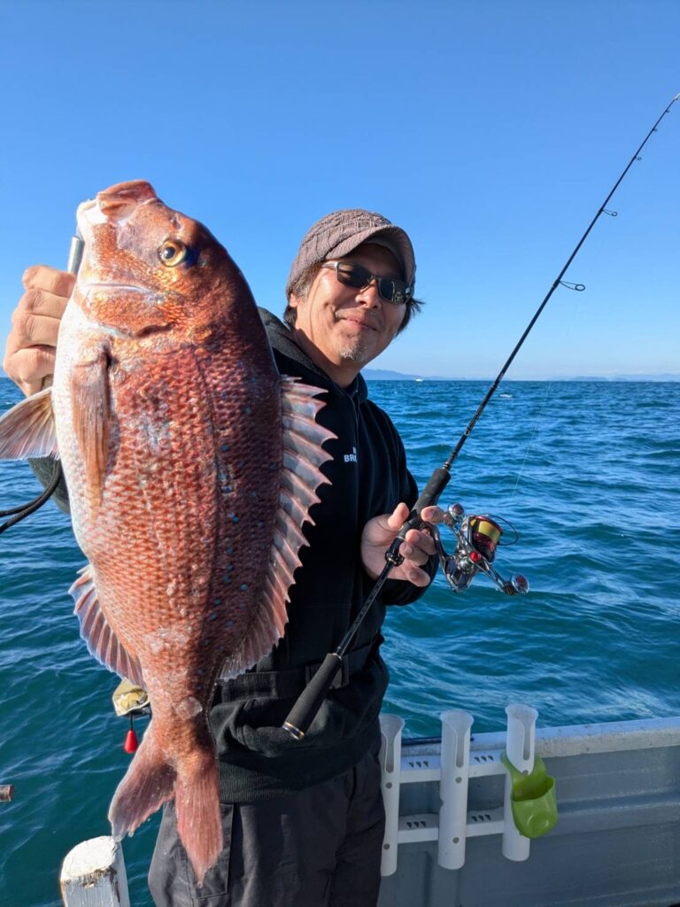 店長ブログ 2025.11.29 11月29日 朝便 ティップラン&五目釣り 前日からのウネリが予報以上に残っており、釣りづらい状況の中、お一人様だけアオリイカキロアップ含む3杯と中々気難しい感じでした。 後半の五目は、カワハギ含め、50オーバー真鯛やキジハタやチャリコ無数(笑)等、飽きない程度に釣れました!( ^∀^)b お疲れ様でしたm(_ _)m いつもありがとうございます╰(*´︶`*)╯♡