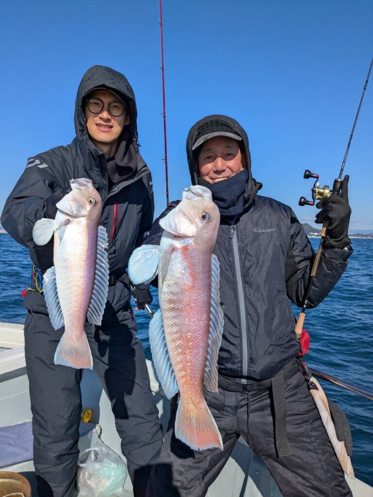 店長ブログ 2026.01.12 1月12日 朝便 アマラバ 本日は、午前中の爆風&ウネリを避けて、11時過ぎからの出船となりました!レンタルタックルのお客様2名様含め、皆さん上手にネクタイやトレーラーをアジャストされ、短時間の釣行でしたが、見事全員安打となりました٩( ‘ω’ )و皆様のガッツに感謝ですm(_ _)m お疲れ様でした╰(*´︶`*)╯♡ いつもありがとうございます⭐︎